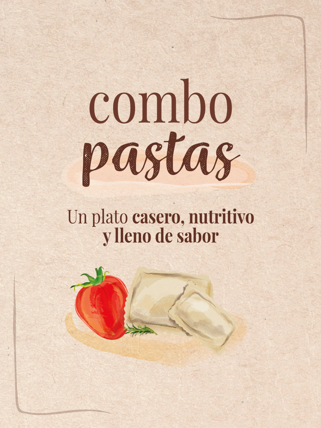 Un plato casero, nutritivo y lleno de sabor, listo en minutos. Nuestro Combo Pastas incluye: